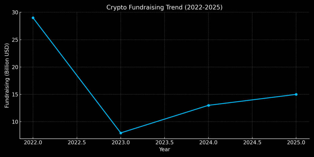 1. Fundraising dropped significantly, reflecting market consolidation.